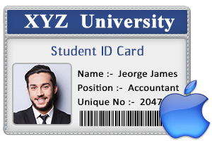 Students ID Cards Maker for Mac design and print multiple ID cards for students with different barcode value and text. You can design photo added student ID cards by browsing id card details from excel data file on Mac machine. Software is having pre-defined templates to quickly design id cards for students.